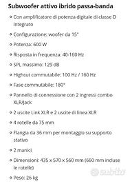 Vendo Subwoofer Proel S15A praticamente nuovo usato solo una volta. Perfetto, qualsiasi prova. Vendo per inutilizzo