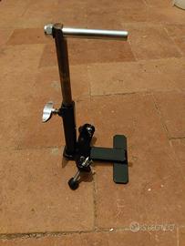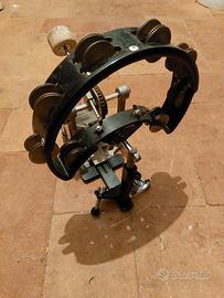 Come da foto vendesi supporto a terra per montare campanaccio, cowbell blocchi o tamburelli su asta regolabile in altezza e rotazione. Compatibile con la maggior parte dei pedali per grancassa. Si utilizza per suonare campanacci, tamburelli ed altre percussioni con il pedale della cassa.