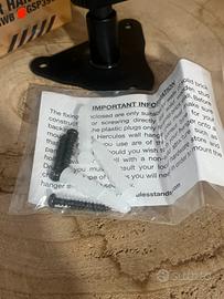supporto da muro per chitarra/basso marca **Hercules Stands**, modello **GSP38WB**. È uno dei migliori sistemi di supporto sul mercato, celebre per la sua affidabilità e sicurezza. Il supporto è dotato del sistema **Auto Grip System (AGS)**: una volta posizionata la chitarra, il peso dello strumento aziona la chiusura automatica dei bracci anteriori, impedendo cadute accidentali. * **Compatibilità:** Adatto per chitarre acustiche, elettriche e bassi. * **Caratteristiche Extra:** Rivestimento in gomma speciale (SFF) per proteggere la finitura dello strumento nei punti di contatto.