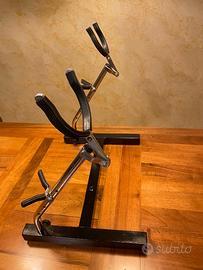 Supporto multiplo professionale per sax tenore e sax contralto. Struttura molto robusta e stabile (praticamente indistruttibile) con possibilità di aggiungere anche altri supporti ad esempio per sax soprano, clarinetto, tromba, ecc. Vendo in ottimo stato.