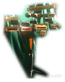 Questo supporto multiplo permette di utilizzare contemporaneamente tanti strumenti tipici della musica latina che vanno da campanacci , agogo , guiro, block triangoli o altro,
