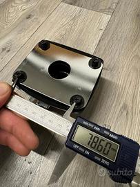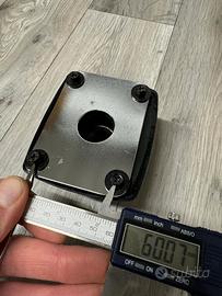 Blocco di montaggio per bracci dei tom da posizionare sopra il rullante. I fori di fissaggio dei bracci sono di misura standard, ma in caso di dubbio è consigliabile verificare. Le misure delle viti di montaggio sono indicate nelle foto; se diverse, sarà necessario forare.