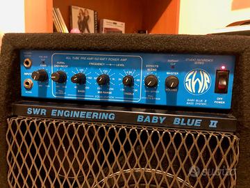 SWR Baby Blue II 160 WATT del 1993 in eccellenti condizioni MAI ACQUISTARE UN AMPLIFICATORE CON OLTRE 30 ANNI DI SERVIZIO SENZA AVERGLI PRIMA FATTO MANUTENZIONE! DOVRAI SPENDERE UN SACCO DI SOLDI IN SEGUITO. L'amplificatore è stato completamente revisionato: nuovi condensatori di alimentazione (inclusi quelli relativi la sezione del segnale del preamplificatore), nuovi resistori e valvole, CALIBRAZIONE DEL BIAS e molto altro. È come nuovo, in condizioni 8 su 10. Altoparlanti 2 X 8" Celestion e Mid/Tweeter 4,5" Bag End E-5S Originali ,Perfetti! Perfettamente funzionante - Completamente originale Sarà imballato in modo robusto e consegnato in sicurezza. Compreso Manuale Originale SWR