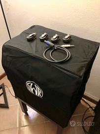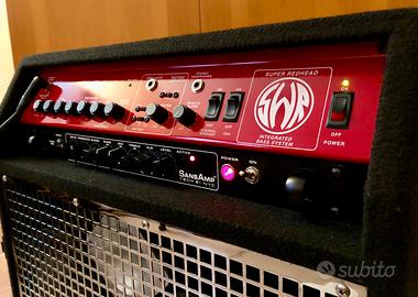 SWR Super Redhead (350/450W @4/2 Ohm) in eccellenti condizioni, dotato di preamplificatore SansAmp RBI, custodia rigida originale, custodia morbida originale, rotelle originali, cavi di alimentazione e segnale professionali.