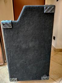 Ho aggiunto le ruote per comodità e sostituito il cavettino dal finale all'altoparlante con uno di sezione più generosa.