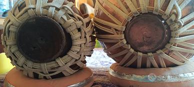Pelli da sostituire perché suonate una volta da un bimbo che non sapeva si rovinassero :/. Complete di cuscini reggi Tablas e copri pelli. Composte in legno e rame, acquistate direttamente in India, tramite un insegnate di Tablas al prezzo di 450€ 10 anni fa. Utilizzate i primi 3 mesi poi conservate in casa.