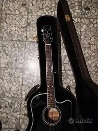 Come nuova ex-demo chitarra elettro acustica Takamine EF341sc. Acquistata nel 2022 solo per collezione. Chitarra dreadnought cutaway elettrificata. Serie Legacy. Suonabilità migliorata grazie al sistema " Asymmetrical Neck". Made in Japan. Considerando che la vendo come se fosse nuova la metto al prezzo di 800 euro compresa la sua custodia rigida. Prezzo non trattabile. Solo consegna a mano. Non spedisco. di seguito le caratteristiche: Lunghezza scala: 644mm Top: Cedro massello Fondo: acero Fasce: acero Manico: mogano Tastiera: palissandro Ponte: palissandro Capotasto: osso 42,5mm Traversino: osso Binding bianco Rosetta in madreperla Dots "cross" in abalone Meccaniche: Die-cast cromate Colore: Nero Fonitura: lucida Elettrificata: CT-4BII.