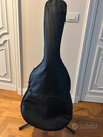 Chitarra Takamine G series, usata per un paio di mesi di lezioni. Valigetta a zaino e supporto da terra inclusi nel prezzo. Anche poggia piede regolabile incluso. Una corda da sostituire.