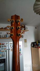 Pro Series di fabbricazione giapponese, la P5J è nota per la sua costruzione di alta qualità e l'attenzione ai dettagli, tra cui una selletta in osso diviso per un'intonazione precisa, meccaniche dorate con bottoni in ambra e intarsi in abalone "dot-in-dot".