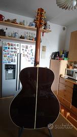 Takamine p5j iumbo 50th potente, forte e risonante . La tavola armonica in abete massello con incatenatura a "X" smerlata offre chiarezza e proiezione, mentre fondo e fasce in palissandro massello creano un suono caldo e ricco.