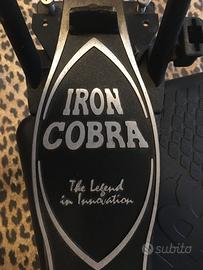 Il primo pedale IRON COBRA vede la luce nel 1992 ma qui ti propongo l'IRON COBRA come tutti lo conosciamo; in vendita il pezzo appartenente all'iconica seconda generazione lanciata nel 1998, con un'immagine più solida, potente e tutta vestita di un aggressivissimo colore nero. Questo modello ha il Para Clamp molto più stabile dove la vite di fissaggio è stata spostata a lato della pedana per facilitarne l'utilizzo oltre ad aver perfezionato ogni parte dettagliata compresa l'aggiunta del porta chiavetta. Viene inoltre introdotta la camma Flexi Glide con cinghia in kevlar per una risposta più reattiva rispetto alla doppia catena. Il disegn aggressivo strizza l'occhio ad un rock metal di chiara matrice anni 80 mostrando al contempo le influenze artistiche tipiche dell'ultima decade del Ventesimo secolo.