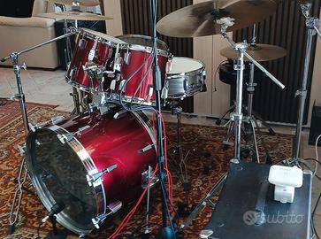 Vendo TAMA Rockstar, made in Japan 1990, perfette condizioni, Cassa 22, Tom 10, 12, Timpano 13, 16 e Rullante acciaio 14, Hi Hat e pedale cassa Yamaha, 3 aste e reggirullante TAMA, SENZA PIATTI, solo vendita diretta NON ACCETTO Proposte e PERMUTE.