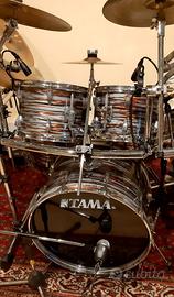 Tama Royalstar fine 70's misure BD 14x22", tom 8x12", tom 9x13" timpano 16x16". Lo strumento è stato restaurato professionalmente e re-wrappato con livrea conforme all'epoca. In vendita i soli tamburi. Rack, piatti e rullante non inclusi. Possibile la spedizione a carico dell'acquirente.