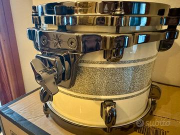 Ci NO CURIOSI/PERDITEMPO! spedisco in tutta Italia. Vendo rarissima e splendida Tama Starclassic in Bubinga, 9 strati, uno strumento di altissimo livello. La Bubinga è un legno ormai fuori produzione, diventato specie protetta: per i veri intenditori non ha bisogno di presentazioni. Suono profondo, potente e definito, semplicemente iconico. Configurazione: • Doppia cassa 22” • Tom 10” • Tom 12” • Timpano 14” • Timpano 16” • Rullante Tama Valkyrien 14” Meccaniche incluse. La batteria ha suonato con me una sola stagione dal vivo, dopodiché è stata sempre tenuta chiusa in custodie, in condizioni eccellenti. La vendo perché una batteria di questo livello merita il palco, non di restare inutilizzata. Dettagli di pregio: • Cerchi Die-Cast in acciaio cromato grigio • Finitura bianco perla con striscia centrale perlata brillantinata • Estetica ed eleganza da vera batteria da palco / set importante Strumento ideale per professionisti o collezionisti esigenti. 📞 Per informazioni dettagliate: chiamate o scrivete al 349 1322372 TRATTATIVE PRIVATE.