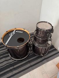 La batteria l'ho usata con cura ed è dotata di pelli Evans e EC2 su tom e timpano, mentre per la cassa ho montato una powerstroke 3.
