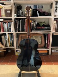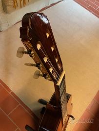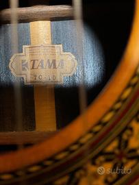 Rarissima Tama TC10 prodotta in Giappone (Hoshino Gakki) tra il 1977 e il 1978. Uno strumento di altissima liuteria, interamente in legni masselli in un’epoca in cui Tama competeva con i migliori produttori mondiali. Top: Abete massiccio di alta qualità. Fondo e Fasce: Palissandro indiano massiccio (non laminato). Tastiera: Ebano selezionato. Finitura: Lacca naturale "Cashew" applicata a mano, che garantisce una risonanza e un calore timbrico superiori. Suono: Potente, bilanciato e ricco di armoniche, ideale per repertorio da concerto. Lo strumento è in ottime condizioni conservative, con legni integri e catenatura interna perfetta. Manico dritto e action confortevole. Un pezzo di storia della liuteria giapponese. Provvista di custodia rigida.