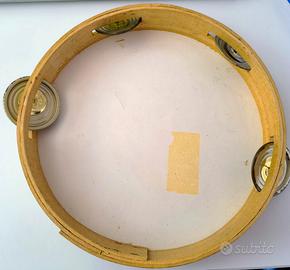 Tamburello souvenir siciliano vintage in legno e carta illustrata.