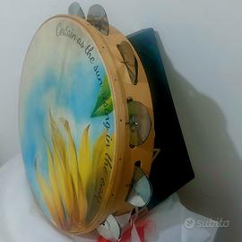 Bellissimo tamburello aerografato realizzato da Vito Giannone, famoso musicista e artigiano del sud italia. Strumento da veri intenditori con un suono perfetto, nessun difetto.