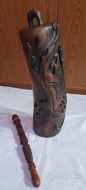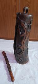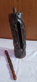 Pregiato tamburo a fessura artistico in legno artigianato etnico Malesia. Legno duro con scolpiti gechi su entrambi i lati. Anche il mallet e' tutta scultura con battente in legno e altro battente con pelle mako'. Misura 53 cm x 14 cm pesa 4 kg. Cinghia a tracolla in pelle. Adatto per percussionismo professionale, performance artistiche, didattica, arti terapie. Pezzo unico bellissimo vendo nuovo euro 120 ñon trattabili. Disponibile a Lissone.