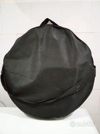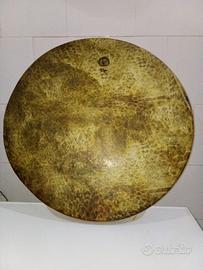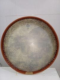 Tamburo etnico (DAF) a cornice con sonagli. Marca ''Sama''. La pelle è sintetica. Risulta leggermente ovalizzato. Vendo per inutilizzo.