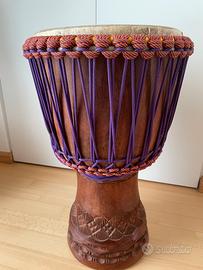 Vendo Djambe in perfette condizioni. Corpo tamburo in legno lavorato con decotazioni, pelle naturale. Diametro 40cm Altezza 60cm