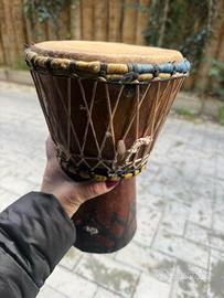 Tamburo Djembe con Base Intagliata a Mano - Tamburo a Calice in Pelle dell'Africa Occidentale OTTIMO SUONO Ottime condizioni