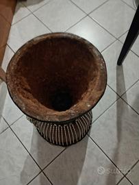 TAMBURO ORIGINALE IN LEGNO INTARSIATO - MISURE h. cm.62 - diam.32