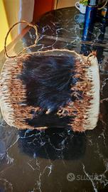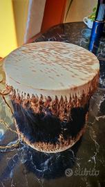 Tamburo in pelle di animale fatto a mano artigianale colore nero e marrone, misure 19x22 cm, funzionante con la cordino