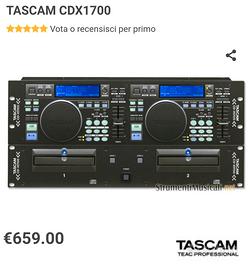 Progettato per impieghi mobili o per clubs, il CD-X1700 è il CD-Player professionale per DJ più evoluto della gamma TASCAM. Oltre a tutte le funzioni presenti nel CD-X1500, il CD-X1700 dispone di una manopola di dimensioni maggiori, della riproduzione "reverse", e di un campionatore da 10 secondi per ognuno dei due lettori. digitaldj Excellence Award Il CD-X1700 può inoltre riprodurre CD MP3, con la possibilità di applicre anche effetti (pitch bend e tempo) sui files MP3. Anche il CD-X1700 supporta il TT-M1 "Turntable Magic", per suonare i CD come fossero dischi in vinile. Il CD-X1700 ed il mixer TASCAM X-17 formano un'accoppiata formidabile, di alte prestazioni e di grandi affidabilità. Questi due modelli combinati, sono perfetti sia per installazioni fisse, che per DJ professionali "on the road"