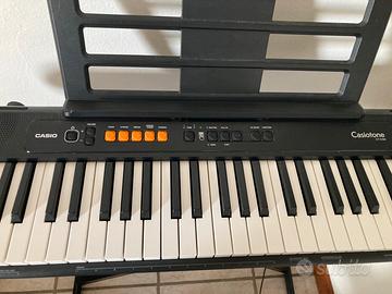 Vendo per passaggio ad altro modello (acquistata per prime lezioni pianoforte) tastiera casiotone con leggio, alimentatore originale (acquistato a parte) e scatola. Senza supporto.