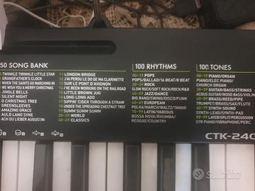 Per motivi di inutilizzo, cedo questa tastiera per ragazzi alle prime armi marca Casio CTK 240 come nuova, perfetta con tanti registri tra pianoforte e chitarra e flauto ecc, ritmi di ogni genere, completa di alimentatore, batterie cariche e istruzioni. purtroppo non ho scatola.. vendo a 35 euro solo per questo e per liberare spazio. Consegna a mano in zona da concordare a Roma. no perditempo