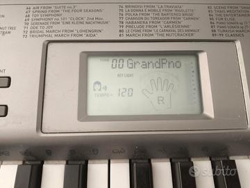 tastiera CASIO LK-125 con stand, completamente funzionante e perfetta per principianti, possibilità di usare 99 strumenti diversi e 99 canzoni memorizzate complete di tutorial con tasti illuminati e indicazione su quale dito usare. possibilità di attaccare cuffie per non usare le casse. Se necessita di essere spedita contattatemi che vedo quanto costa.