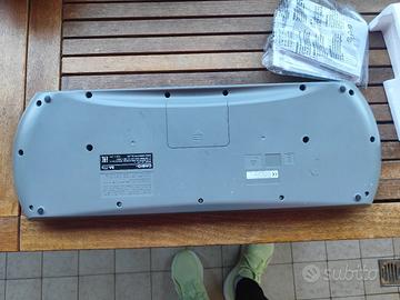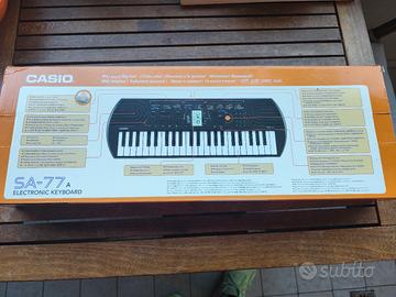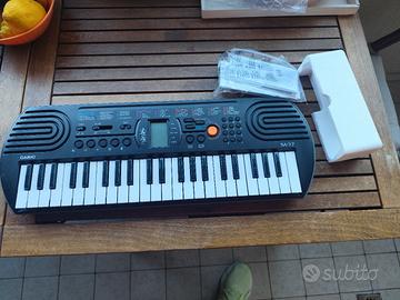 Mini-tastiera portatile a 44 tasti, ideale per bambini e principianti.Offre 100 toni, 50 ritmi e 10 brani dimostrativi, con una polifonia a 8 voci e un display LCD. Include 5 drum pad, pulsante di cambio rapido piano/organo, alimentazione a batterie o alimentatore( incluso nell'offerta con relativa borsa imbottita porta tastiera coma da immagini).