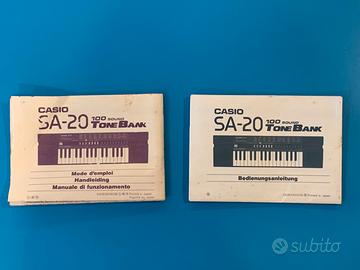 Tastiera Casio ToneBank keyboard SA-20 edizione limitata Michael Jackson. Come si può vedere dalle foto la tastiera è corredata dalla scatola/confezione originale e dal manuale originale. Mi è stata regalata verso la fine degli anni '80 ed è rimasta con me fino ad oggi. Ho fatto un test pochi giorni fa ed è ancora perfettamente funzionante. Segnalo che manca lo sportellino del vano batterie e il cavo di alimentazione ma funziona perfettamente con le pile. Vendo perché devo liberare spazio.