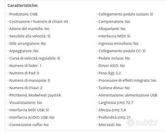 Tastiera a 49 tasti con interfaccia MIDI USB. Per le caratteristiche vedere l'ultima foto. Usata poche volte. Non dotata di confezione originale.