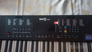 Tastiera compatta RockJam a 61 tasti con leggio per spartiti, alimentatore, adesivi per note di pianoforte e lezioni di pianoforte semplici