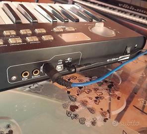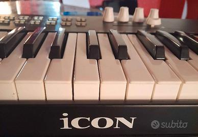 TASTIERA CONTROLLER MIDI USB 49 TASTI Icon Nueron 5 midi-usb con 49 tasti sensibili alla velocità in condizioni pari al nuovo. Richieste euro 50 e solo contatti telefonici. Qualsiasi prova di persona o spedisco in tutta Italia. Caratteristiche principali 49 tasti "piano style" sensibili alla velocità Joystick per pitch bend/modulation 4 potenziometri completamente programmabili su 2 Layer (per un totale di 8 potenziometri) 1 fader programmabile Display a LED 3 segmenti Ottava su / giù; trasposizione su / giù Molteplici curve di velocity selezionabili 14 pulsanti MIDI comprendenti 6 pulsanti di trasporto completamente programmabili Funzioni di programmazione aggiuntive su keybed 20 allocazioni di memoria non volatile Jack uscita Midi Connettori TRS per pedale d'espressione e pedale sustain Compatibile con Windows XP, Vista (32-bit), Windows 7 (32-bit/64-bit) e Mac OS X USB2.0 ad alta velocità e alimentazione USB bus-powered o alimentatore opzionale Colore: Nero Specifiche tecniche Connettore USB 2.0 MIDI Out: 5-pin Din socket femmina Pedale Sustain: 1x1/4" (6.35mm) jack Pedale d' espressione: 1x1/4" (6.35mm) jack Alimentazione: USB bus oppure tramite adattatore ICON DC 12V/350mA Consumo: 300mA o minore Peso: 5.05kg (11.14lbs) Dimensioni: 750x244x56 mm