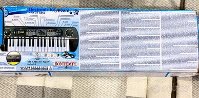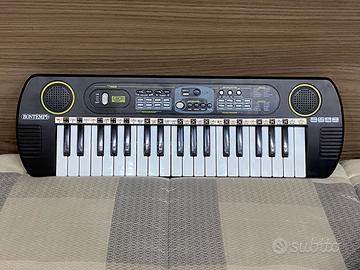 Tastiera modello 153770 Caratteristiche: Include 6 canzoni preregistrate, 10 suoni e 10 ritmi. Funzionalità: Dispone di funzioni di registrazione e riascolto, effetti di vibrato e sustain, e gestione facilitata degli accordi. Connettività: È dotata di una presa USB per leggere file MP3 da una chiavetta e include un cavetto USB-DC per l'alimentazione. Audio: Include una presa per cuffie per esercitarsi senza disturbare.