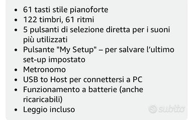 Tastiera Casio modello CT-s100 perfettamente funzionante, usata pochissimo, vendo per inutilizzo. Tutte le caratteristiche nell’ultima foto.