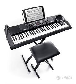 Tastiera Elettronica Portatile con 61 tasti, 200 suoni e Altoparlanti stereo integrati + Stand, Sgabello, Microfono, Cuffie e Leggio