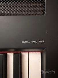Tastiera yamaha con gambe e pedale. Un tasto bloccato (sesto tasto bianco da destra)
