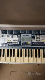 tastiera elettronica Bontempi modello PM 685 + il supporto incluso Tasti: 61 tasti di dimensioni standard. Suoni: Dispone di 128 suoni di alta qualità. Funzioni: Include sequencer per registrare, oltre 100 stili di accompagnamento automatico e 50 canzoni preimpostate per l'apprendimento. Connettività: Dotata di funzionalità MIDI generale.