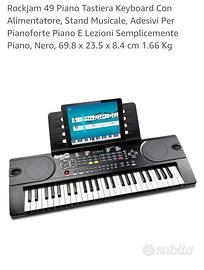 Tastiera Rockjam 49, piano tastiera keyboard con alimentatore, stand musicale e custodia nera con tracolle (vedi descrizione in foto)