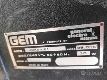 Tastiera elettronica portatile GEM Joker 61, prodotto dall’azienda italiana GEM (Galanti Electro Music) negli anni '70.