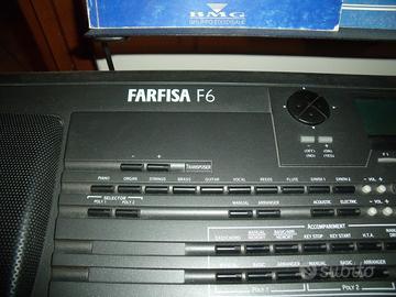 Farfisa f6 legge tutti i formati midi piu' i formati far. ed e' equipaggiada di sequencer a 16 tracce + scheda espansione video per karaoke su schermo tv o monitor, la scheda ha anche funzioni di titolatrice video per far scorrere messaggi di testo a schermo + scheda per lettura suoni campionati tra cui organi hammond
