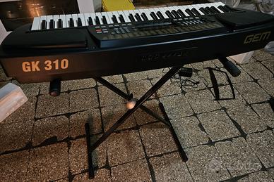 Vendo causa inutilizzo tastiera GEM GK-310 funzionante e in ottime condizioni. Per le caratteristiche tecniche rimando il modello in internet dove ci sono svariate informazioni. Vendo solo gli accessori in foto. Tengo però a fare 2 precisazioni: il leggio ha una riparazione (che lo rende perfettamente funzionante) al piede sinistro e l'ultimo tasto sulla destra risulta un po abbassato (entrambine nell'ultima foto).