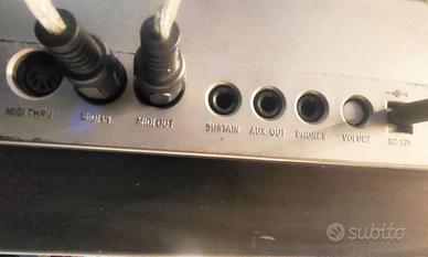 Buongiorno a tutti! Stupenda tastiera General Music gk340, direttamente dagli anni a cavallo tra '90 e '00. La tastiera è in OTTIME condizioni, sia estetiche (segni del tempo solo microscopici) che di funzionamento. Caratteristiche principali: - 61 tasti (5 ottave) - tasti dinamici SI, pesati NO - pitch bend, effetti DSP, multitrack, dual - midi in-out-thru - altoparlanti potentissimi - uscite cuffie e aux stereo (uguali nel funzionamento ma una delle due non disattiva gli speakers) - porta sustain per pedale (non incluso) - incluso leggio reggispartiti - incluso alimentatore originale Tutto funzionante alla perfezione. Su richiesta posso aggiungere borsa imbottita (nuova) per trasporto e pedale sustain (nuovo). È possibile il ritiro a mano in Torino o la spedizione (accordiamoci per bene data la dimensione dell'oggetto!)