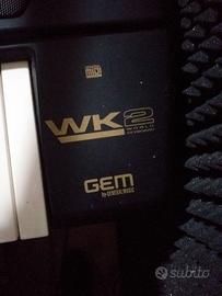 tastiera Gem PK 2 con lettore floppi 3" perfettamente funzionante, completa di custodia doppio cavalletto ( vedi foto) cavo alimentazione e innumerevoli floppi con brani dagli anni 60 agli anni 90