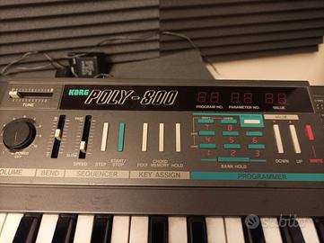 Synth KORG Poly 800 in condizioni eccellenti (anno 1983/84). Funziona perfettamente. Synth originale, mai modificato e mai riparato. Foto originali e attuali. Alimentatore compatibile incluso. Il prodotto é perfetto ed è possibile visionarlo e provarlo in loco, per la spedizione si provvederà ad un accurato e sicuro imballaggio ma senza alcuna responsabilità di eventuali danneggiamenti dovuti al maneggiamento e trasporto. Si vende solo Tastiera KORG Poly 800 e alimentatore senza ulteriori cavi, no scatola. Prezzo appena ribassato, non trattabile!