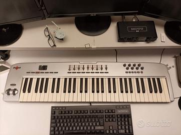 Tastiera madre / muta / midi M-AUDIO OXYGEN 61. Condizioni eccellenti sia estetiche che di funzionamento. Si alimenta con cavo USB (incluso). Scatola, accessori e software originali. Preferito il ritiro in loco o zona, eventuale spedizione a carico dell'acquirente. Se vedi l'annuncio é disponibile. Prezzo appena ribassato, non più trattabile. Alcune caratteristiche principali: 61 tasti sensibili alla velocità 8 manopole assegnabili via MIDI 9 cursori assegnabili via MIDI 6 controlli di trasporto dedicati Pulsanti traccia su/giù dedicati La modalità Direct Link associa automaticamente i controlli ai parametri DAW comuni Le preimpostazioni di fabbrica mappano i controller sul popolare software di strumenti virtuali Pulsanti di selezione esclusivi per scorrere al volo preset, cambi di programma e canali MIDI 4 curve di velocità e 3 impostazioni di velocità fisse Sostieni l'input del pedale Conforme alla classe con Windows e Mac OS Alimentazione tramite bus USB Specifiche Dati MIDI da controller variabili: Numero di controllo MIDI RPN/NRPN Programma, Banca LSB, Banca MSB Pitch Bend Messaggi SysEx GM/GM2/XG Dati MIDI da pulsanti/interruttori: Nota su Nota Attiva/Disattiva Attivazione/disattivazione MIDI CC Program, Bank LSB, Bank MSB preset Funzioni MIDI Machine Control Messaggi SysEx GM/GM2/XG Dimensioni scatola L.130xP.30xH.15